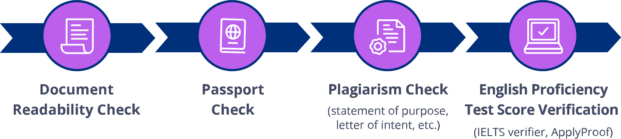 Once the student has completed their application, submitted all necessary documents, and paid the application fee, we run a series of automated checks to ensure the student’s information is accurate, valid, and legible: