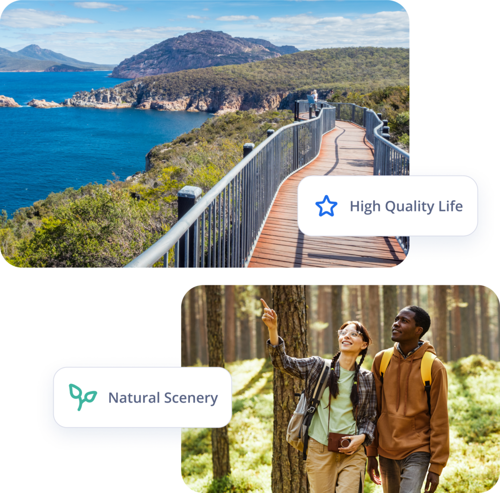 Australia’s known for its natural beauty, multicultural cities, and friendly people! No matter which side of Australia you end up on, you’ll find safe and vibrant communities full of caring, kind people.