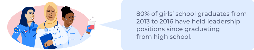 At all-girls schools, students are provided with the opportunity, exposure, and involvement they need to pursue any academic interest they express interest in.