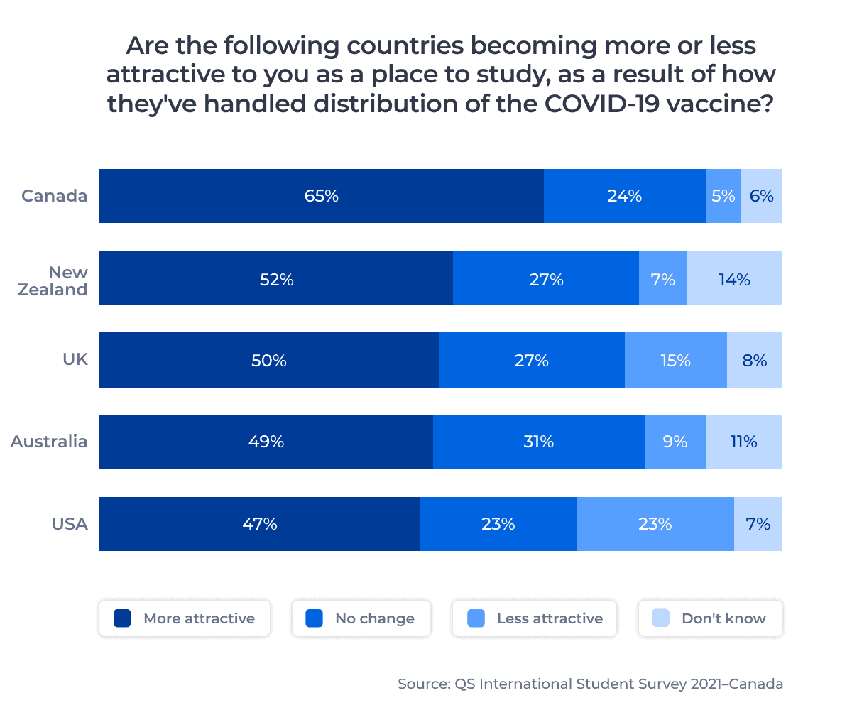 65% of students see Canada as a more attractive destination as a result of how they’ve handled the vaccine rollout.