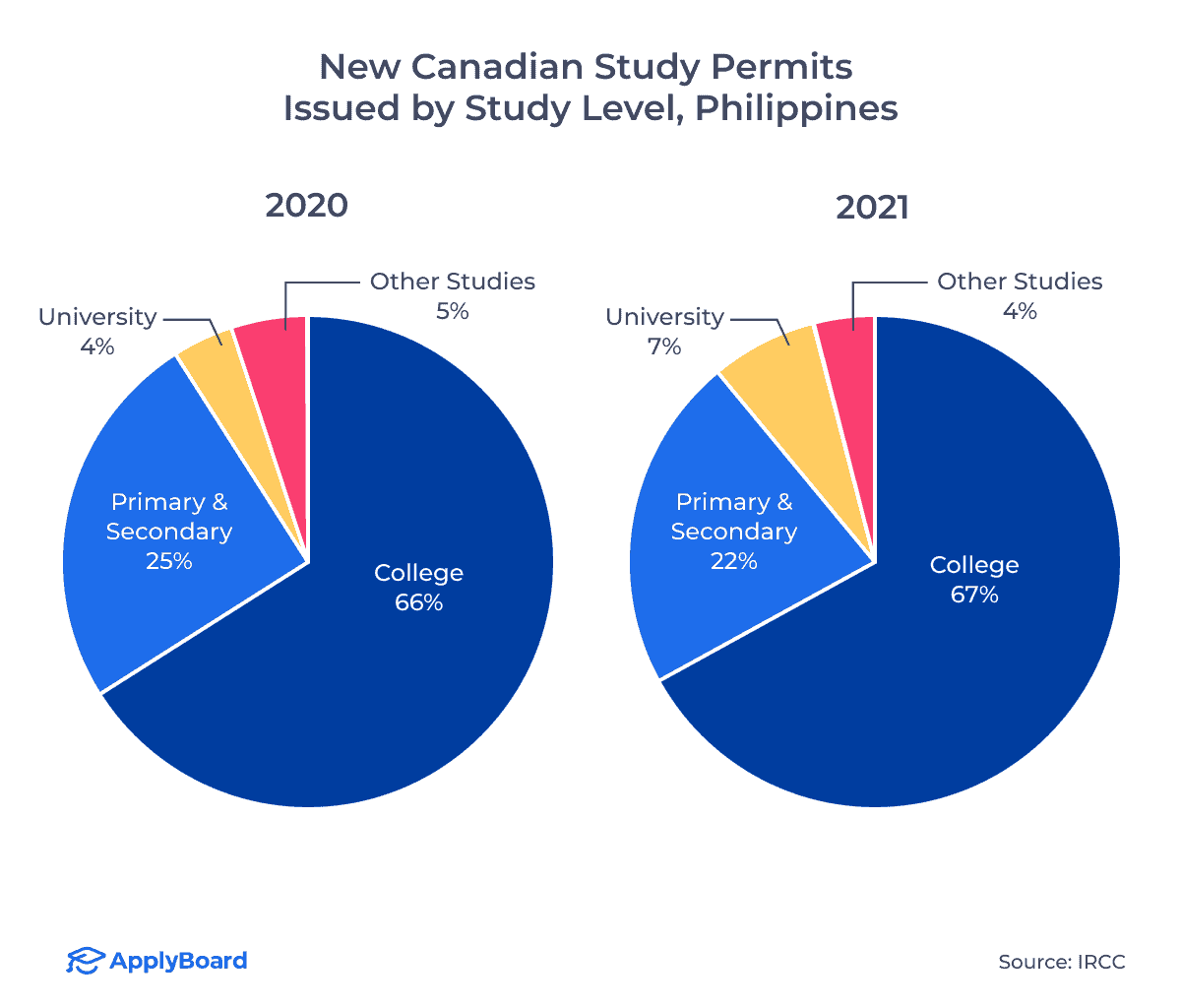 - In 2021, two out of every three study permits issued to Filipino students went to students at the college level.